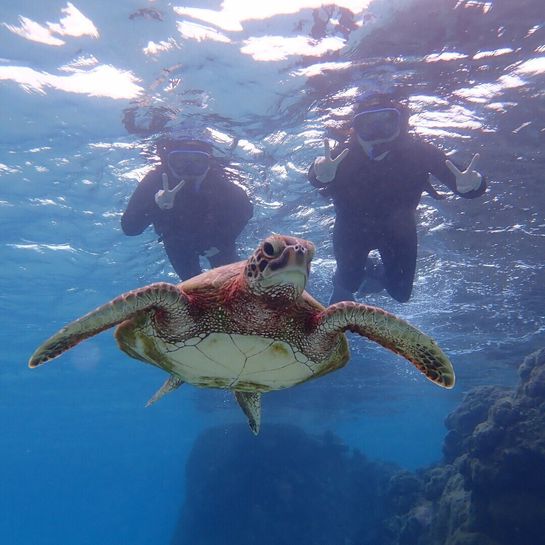 與海龜共遊:即使是浮潛新手,也能在新城海岸、吉野海岸等水流平穩的地區,近距離觀察悠游的海龜,是宮古島最受歡迎的親子或初學者潛水體驗,不僅安全,也能留下珍貴的海洋回憶~